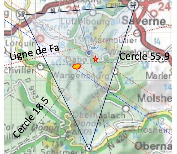 Etoile=Chapelle de Dabo et nuage~Beimbach a la croisée des 2 cercles et traits