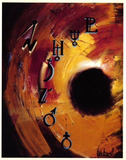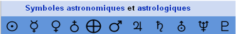 Illustration : Les symboles de la terre, Mars, Jupiter, Saturne, Uranus, Neptune, Pluton et la lettre « N » dans laquelle est plantée un compas (ajoutée dans la version finale)