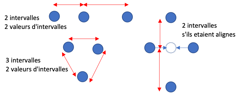 Entre eux, il n’y aurait que deux intervalles s’ils étaient alignés.