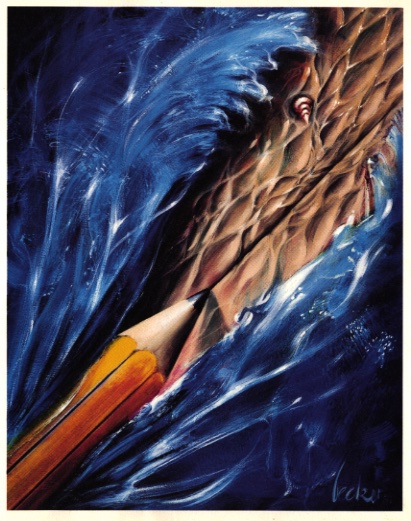 Illustration : un crayon «fend » la mer, du bas de la page, à droite, vers le haut, à gauche. Voir exemple de visuel ci-joint