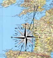 Par conséquent, le parcours de Cherbourg vers le Sud importe peu puisqu’au moment où on voit la Chapelle de Dabo par Bourges, le parcours se termine. Dans la solution classique, ce trait initial va de Cherbourg vers la ville d’Hernani, point de visée choisi à l’aide du titre faisant référence aux mot de passe des Conjurés dans la pièce de théâtre Hernani de Victor Hugo. Alternativement, on peut suivre la direction du trait de l’IS de MB vers Los Picos en Espagne en passant près de Vannes. Une contrainte supplémentaire existe avec la nécessité d’avoir l’aide de Neptune par deux fois, ce qui obligerait de passer par deux bras de mer, par exemple dans le Golfe de St Malo et puis au large de la côte ouest de la France dans l’Atlantique.
