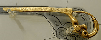 Al Mar signifie en espagnol « À la mer ». Dans le dictionnaire, on trouvait aussi ce terme à la définition de « Maures », c.a.d. les arabes qui sont à l’origine des chiffres. La fibule de Préneste dite « à Drago » demandait une recherche plus poussée, particulièrement en 1993. C’est une aiguille étrusque ou épingle à nourrice utilisée pour tenir les robes ou toges (aiguille~épine de rose). Cette fibule est l’une des premières traces de l’écriture étrusque et donc latine. La forme de la fibule de Préneste rappelle celle de la clé de Fa.