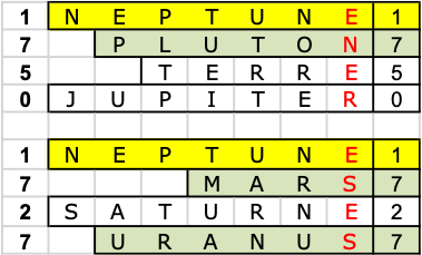 La suite des planètes peut être rearrangé dans la suite des chiffres sur les BSM. Cependant, la suite n’est pas unique puisque 7 est lié a plusieurs planètes.