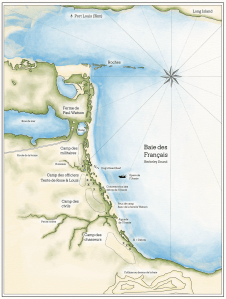 Au retour, après le Cap Horn, le navire doit faire escale aux iles Malouines (aka « de St Malo ») mais malheureusement s’échoue sur un rocher dans la baie de France le 14 Février à 16h00 selon le journal de Freycinet (peut être le 15 en France). Le lieu du Naufrage est non lion de Port Louis (aussi appelé Port Soledad, c.a.d., « solitude » aussi le nom donné à la vierge Marie). A noter que le code aéroport des iles Malouines est SF. Apres 3 mois, Freycinet acheté un navire américain, le Mercury, qu’il rebaptise la Physicienne. On peut encore retrouver des « VESTIGE DE NAVIRE ».3 SAGE-VERITE-DEVIN