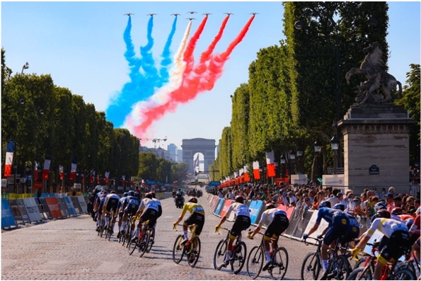 AVEC CETTE ERECTION,PEUT-ON DIRE QUE LA TERRE DE PARIS S’OUVRE POUR DONNER NAISS ANCE A UNE MAGNIFIQUE FLECHE DE 23 M DE HAUT. L.ARC DE TRIOMPHE, L’OBELISQUE ET LA PLACE DE LA CONCORDE, VISUEL 530,NE S ONT-ILS PAS HONORES PAR LE TOUR DE FRANC E ?