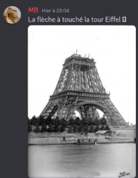 On se souvient du midit qui parle de la flèche qui touche la Tour Eiffel avec l’intention de contredire TomPoucex…le trait, la Tour Eiffel et le Pouce! On note aussi la construction de la Tour en 1888 (3 x huit) et l’Exposition universelle 10 ans après celle de 1878.